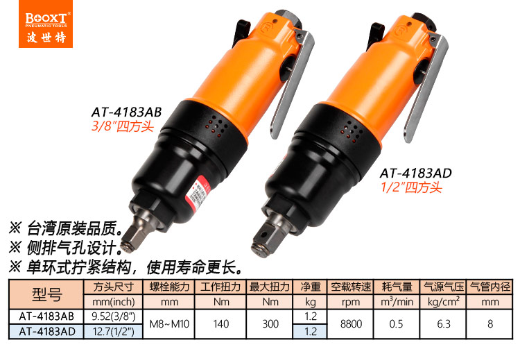 東莞市強勁五金工具有限公司提供臺灣BOOXT波世特品牌氣動工具,氣動沖擊扳手AT-4183AB廠家直銷,首件享特價。咨詢熱線:4008301980