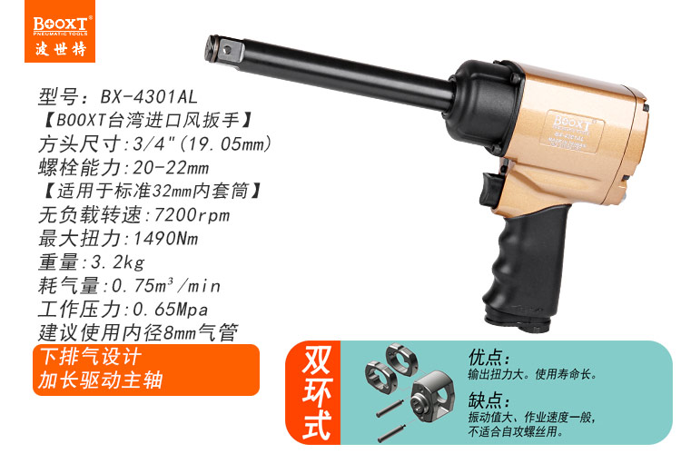 東莞市強(qiáng)勁五金工具有限公司提供臺(tái)灣BOOXT波世特品牌氣動(dòng)工具,加長(zhǎng)軸風(fēng)動(dòng)扳手BX-4301AL廠家直銷,首件享特價(jià)。咨詢熱線:4008301980