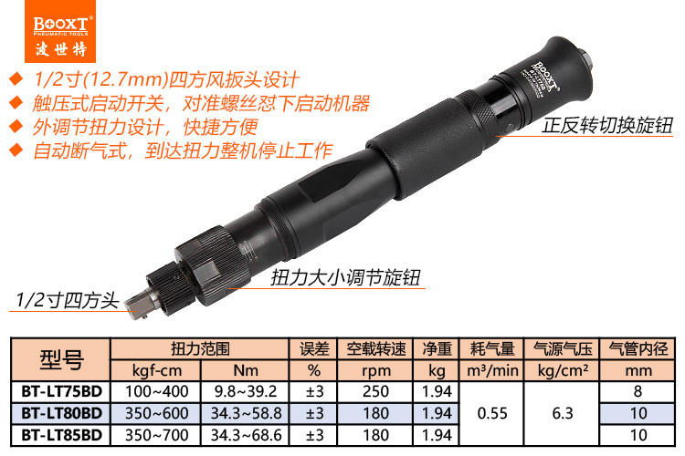 東莞市強(qiáng)勁五金工具有限公司提供臺(tái)灣BOOXT波世特品牌氣動(dòng)工具,定扭力氣動(dòng)螺絲刀BT-LT75B廠家直銷,首件享特價(jià)。咨詢熱線:4008301980