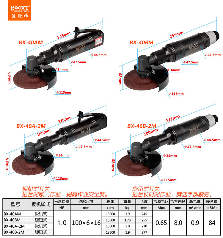 東莞市強(qiáng)勁五金工具有限公司提供臺灣BOOXT波世特品牌氣動工具,風(fēng)動角磨機(jī)BX-40B-2M廠家直銷,首件享特價。咨詢熱線:4008301980
