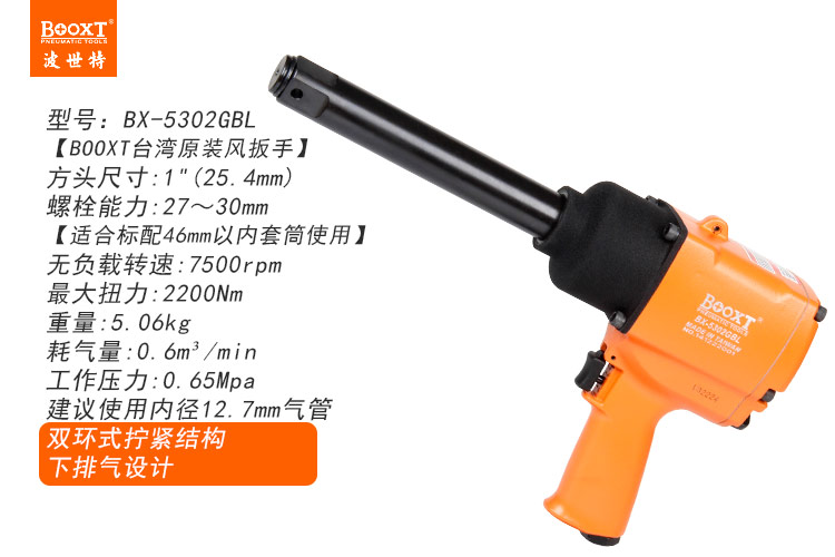 東莞市強(qiáng)勁五金工具有限公司提供臺(tái)灣BOOXT波世特品牌氣動(dòng)工具,加長(zhǎng)軸氣動(dòng)扳手BX-5302GBL廠家直銷,首件享特價(jià)。咨詢熱線:4008301980