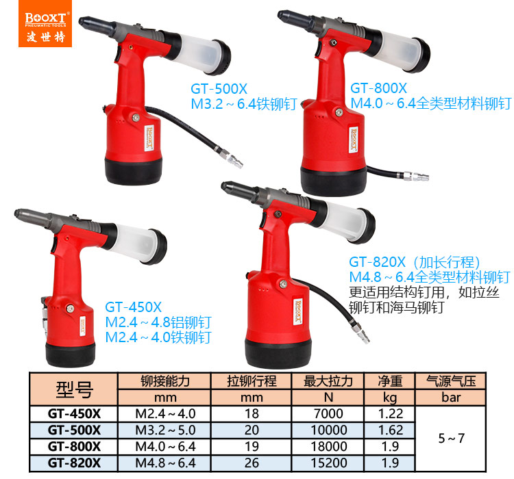東莞市強(qiáng)勁五金工具有限公司提供臺灣BOOXT波世特品牌氣動工具,氣動鉚釘槍GT-450X廠家直銷,首件享特價(jià)。咨詢熱線:4008301980
