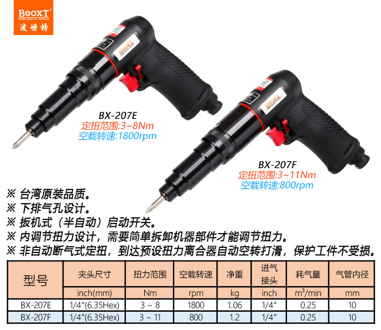 東莞強(qiáng)勁五金工具有限公司提供臺(tái)灣BOOXT波世特氣動(dòng)工具,可調(diào)定扭力風(fēng)批BX-207E廠家直銷,首件享特價(jià)。咨詢熱線:4008301980