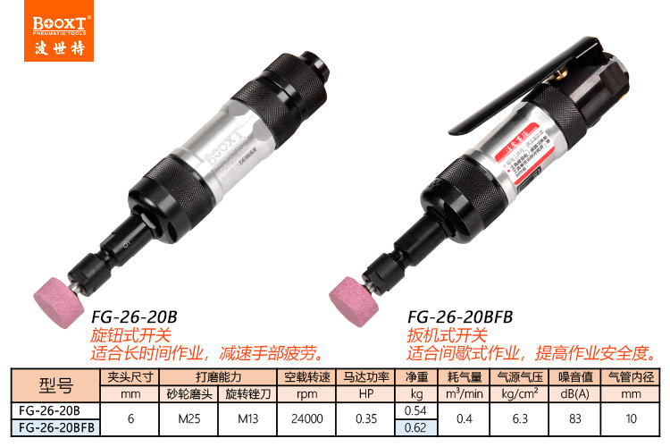 東莞市強(qiáng)勁五金工具有限公司提供臺灣BOOXT波世特品牌氣動工具,高精密風(fēng)磨機(jī)FG-26-20BFB廠家直銷,首件享特價。咨詢熱線:4008301980