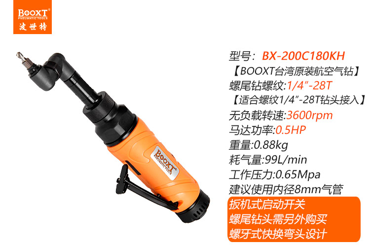 東莞市強(qiáng)勁五金工具有限公司提供臺(tái)灣BOOXT波世特品牌氣動(dòng)工具,帶螺牙偏角氣鉆BX-200C180KH廠家直銷,首件享特價(jià)。咨詢熱線:4008301980