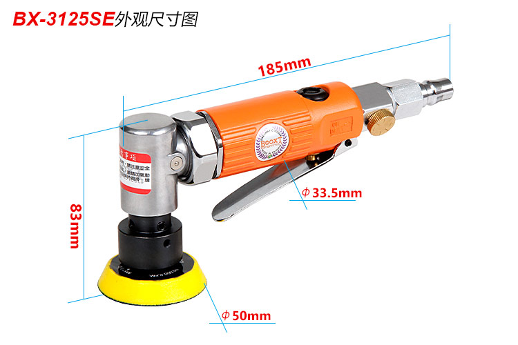 • 產(chǎn)品參數(shù): 底盤尺寸:50mm 【2寸】 偏心尺寸:3mm(標配)(可定制細磨偏心1.5mm/超細磨偏心0.75mm) 空載轉速:18000rpm 工具全長:185mm 重 量:0.56kg 耗 氣 量:0.45m3/min 【工業(yè)型/帶偏心】