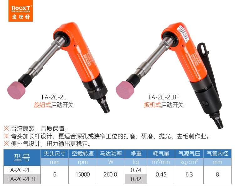 東莞市強勁五金工具有限公司提供臺灣BOOXT波世特品牌氣動工具,風動深孔打磨機FA-2C-2LBF廠家直銷,首件享特價。咨詢熱線:4008301980