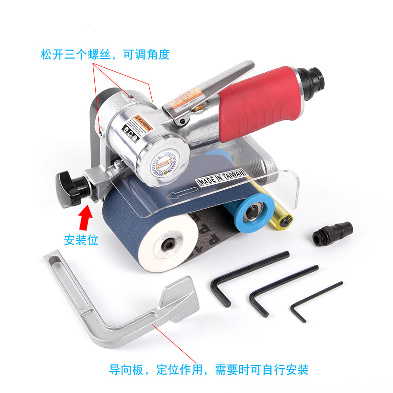 1.簡潔輕巧的設(shè)計,根據(jù)不同砂帶尺寸靈活應(yīng)用到各類工件;
